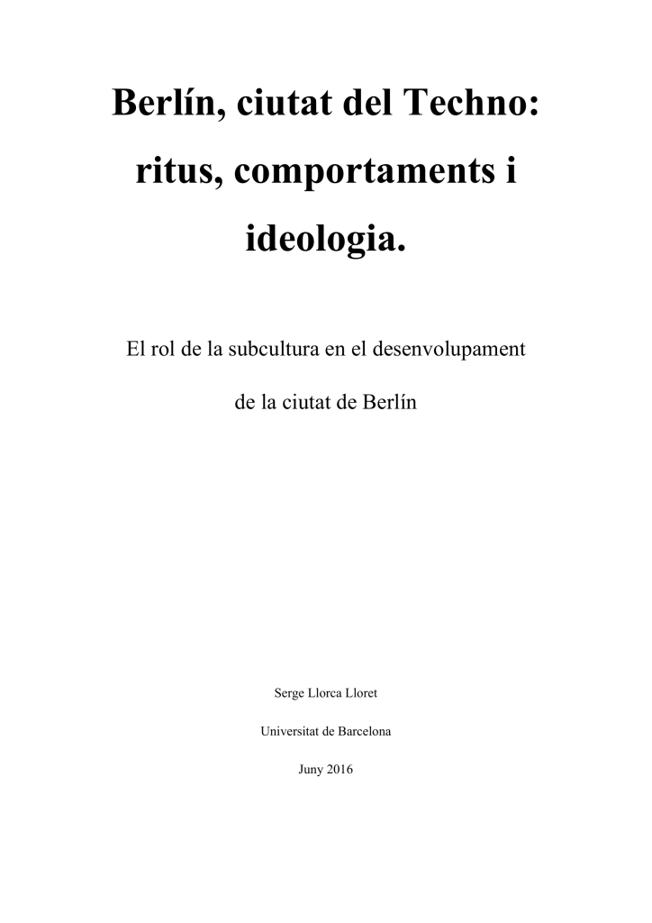 Investigación sobre subculturas en Berlín para la Universidad de Barcelona (versión en catalán)