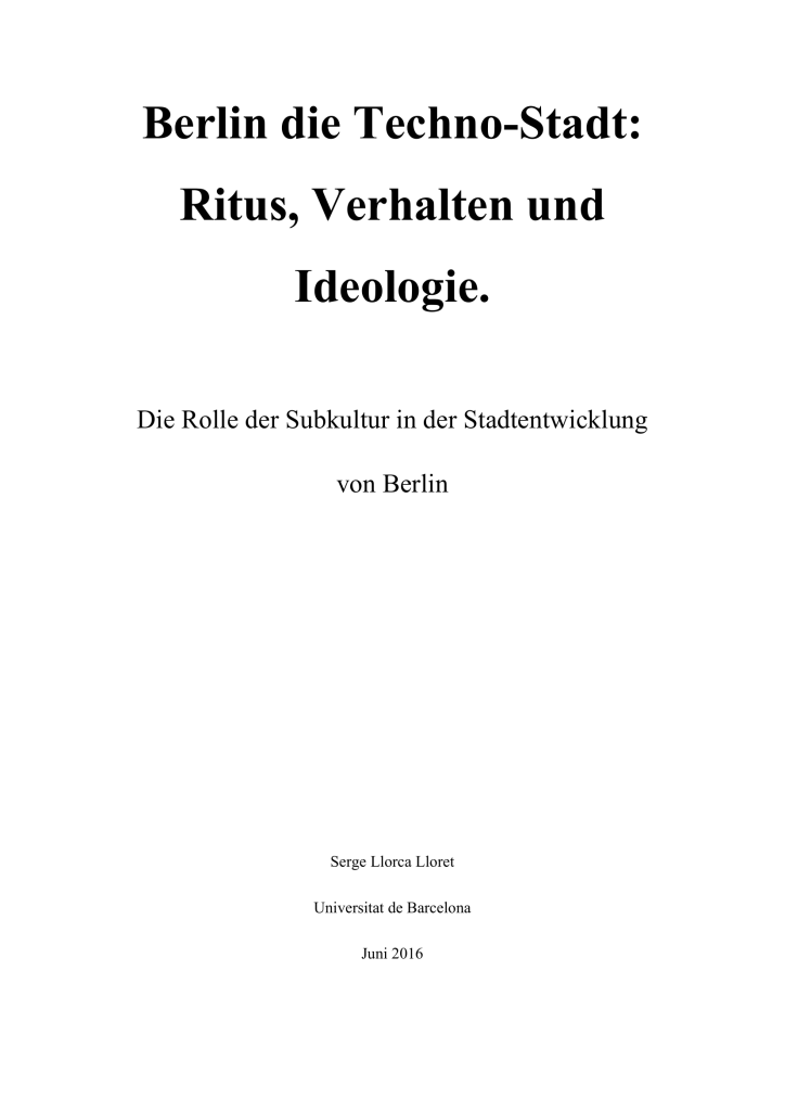 Investigación sobre subculturas en Berlín para la Universidad de Barcelona (versión en alemán)